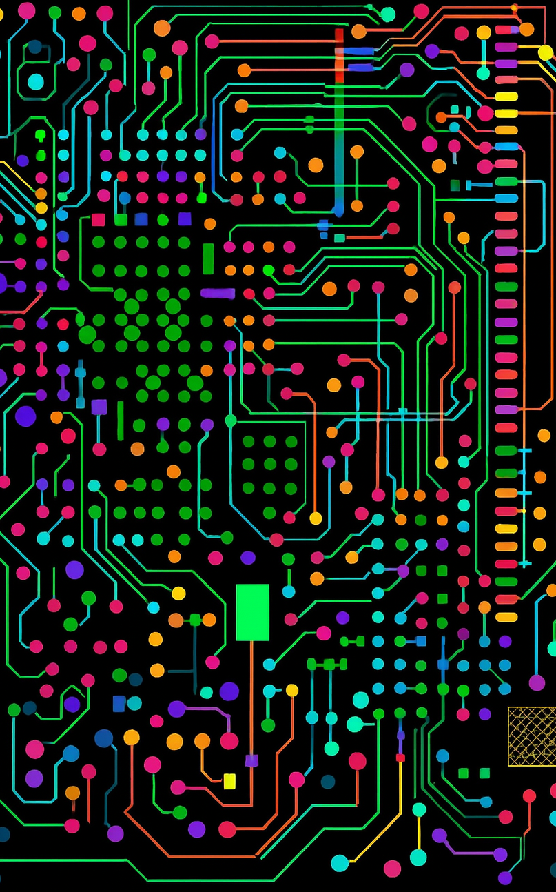 Bild 2: Ein Ausschnitt der Lötstoppmaske eines Leiterplattenlayouts mit 16 Kupferlagen, Lötstopplagen, Positionsdruck und fünf Bohrdateien - Durchkontaktierungen, Blindvias, Buriedvias.