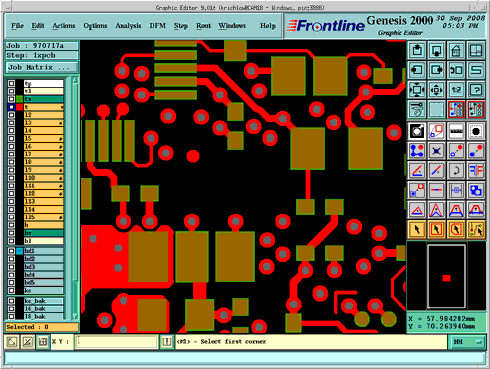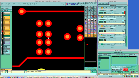 Beim Leiterplattenlayout ist es eine Aufgabe des Leiterplatten-Designers, sich mit der technischen Machbarkeit seines Entwurfes, den Möglichkeiten eines Leiterplattenherstellers oder dem marktüblichen Standard für die Herstellung einer Leiterplatte auseinander zusetzen. Wenn dies nicht erfolgt oder das Layoutprogramm sogar mit falschen Parametern arbeitet, muss der CAM-Mitarbeiter beim Leiterplattenhersteller mithilfe des DRC (Design Rule Check) Fehler beheben (Bild 1).